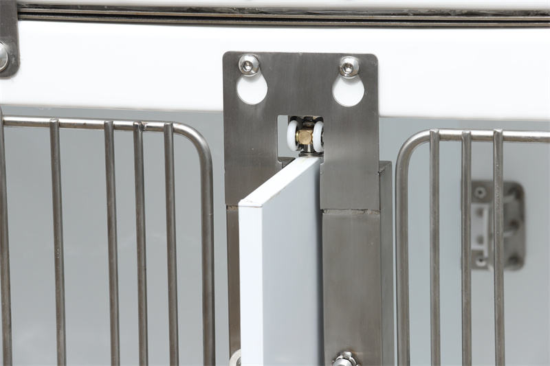 Предустановленные распылительные форсунки и шланги, дренажная система с фильтром и розетки превращают его из простой клетки в многофункциональную рабочую станцию. Электрооборудование, такое как наркозные аппараты, концентраторы кислорода и грелки, можно подключать к розеткам и подвешивать к центральной перекладине двери. Передняя дверь модульной клетки для собак из ветеринарного водонепроницаемого стекловолокна позволяет устанавливать солнцезащитные козырьки через U-образные изгибы, блокируя солнечный свет и одновременно служа ветрозащитным барьером.